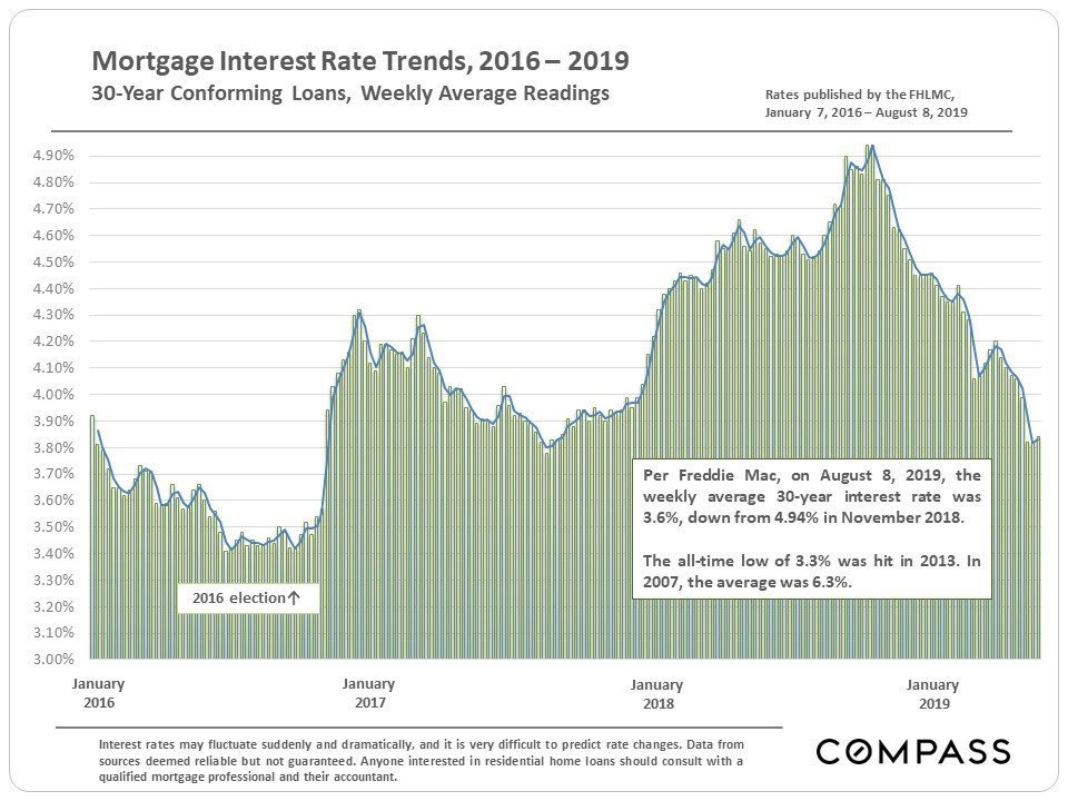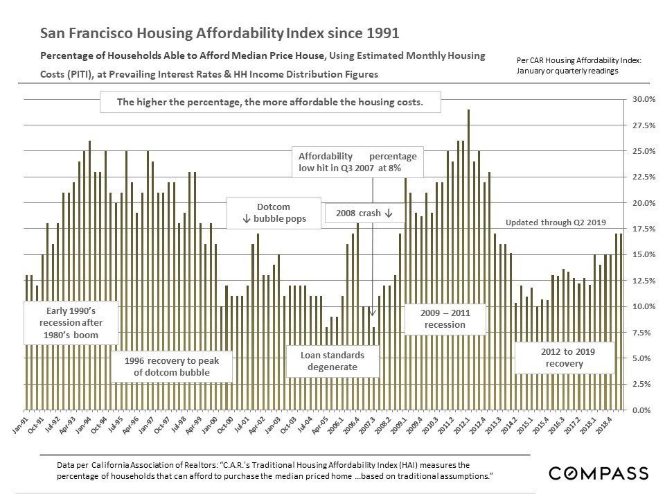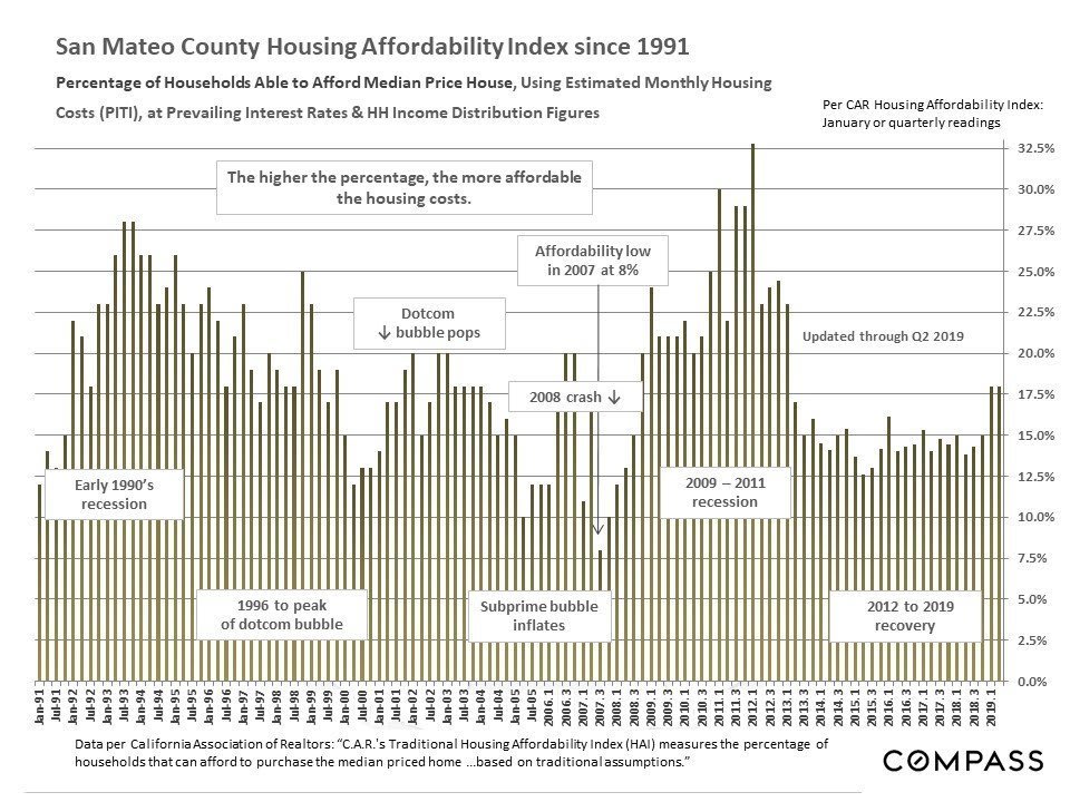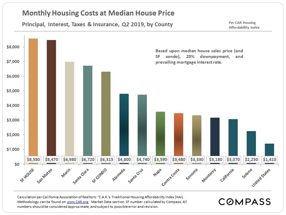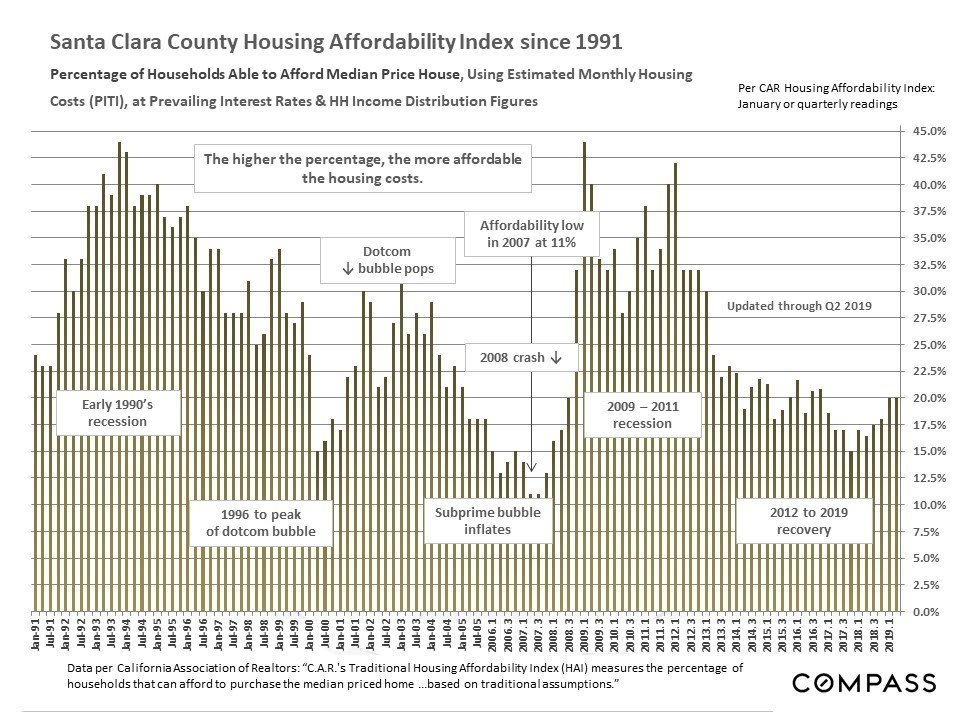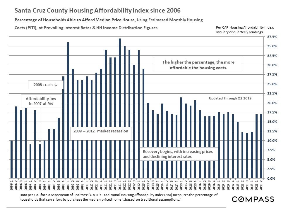 Home Prices, Appreciation & Ownership Costs; Affordability Percentages, Household Incomes, Interest Rates, Rents & Homelessness. August 2019 Report – including 30 illustrative charts.