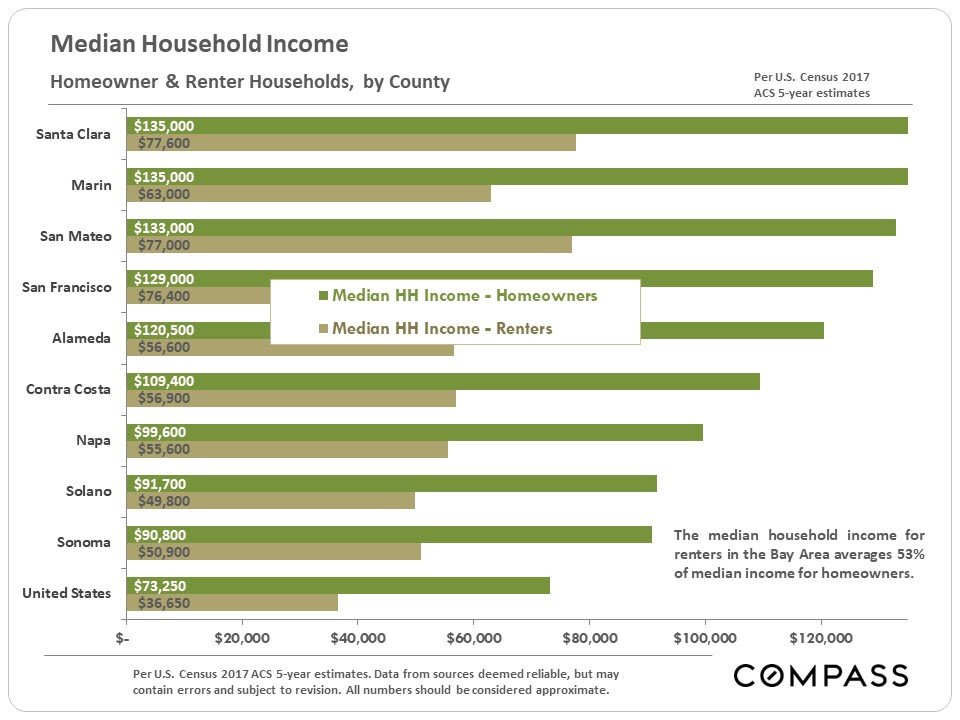 Housing affordability may be the largest social and political issue in the Bay Area, and the effects of low affordability also greatly impact the general economic picture in a wide variety of important ways – from hiring and business relocation, to the ability of “normal working people” (not enriched by the high-tech boom) to live here. Significant demographic shifts are also taking place as some groups move out and others move in.