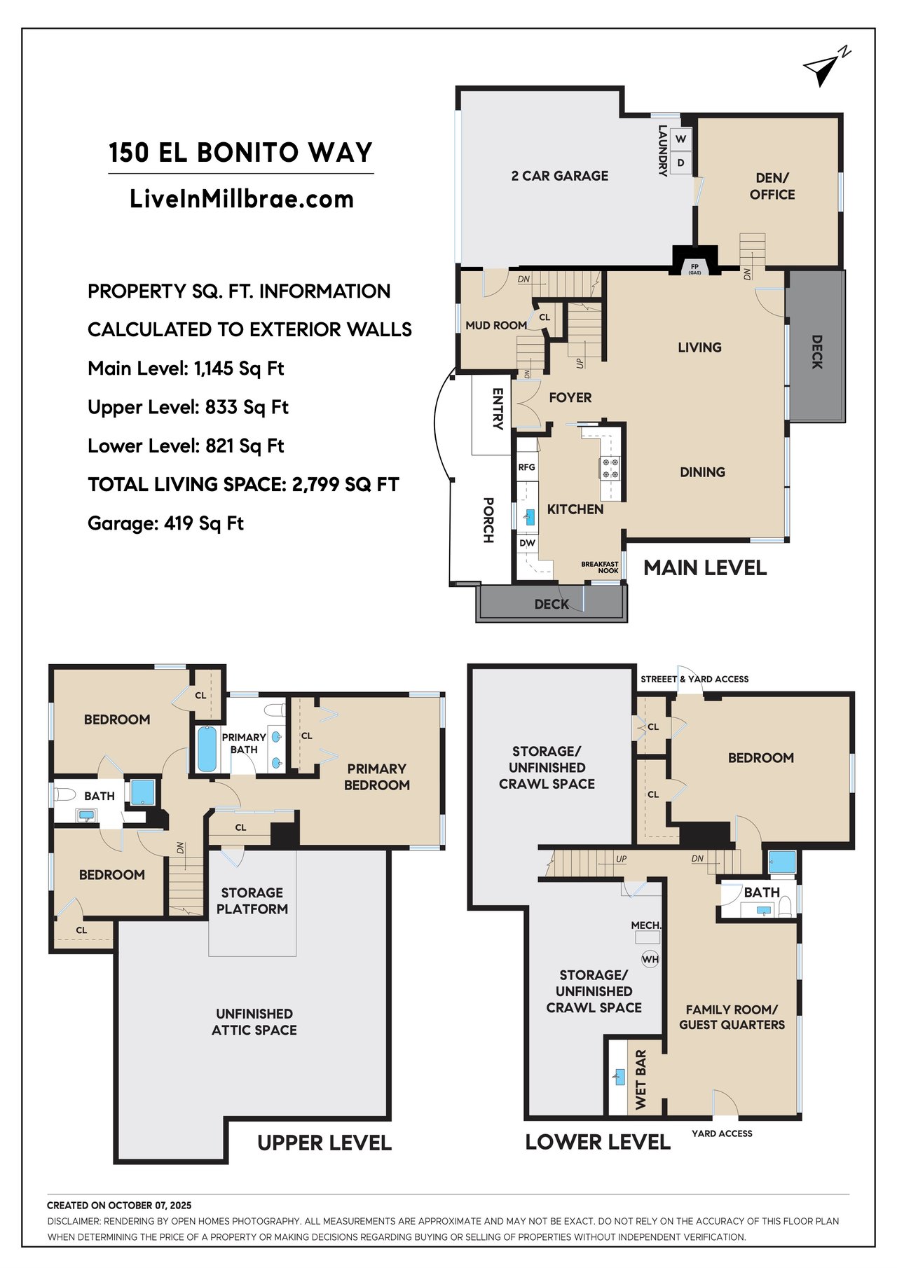 The main level of the house features a gorgeous kitchen with a breakfast nook, a welcoming living and dining room, a walk-out deck, a flexible room that can be used as another living room, media room, or office and a mud room with access to the garage. The upper level has a primary suite, two more bedrooms, remodeled bathrooms, and easy access to a large storage space. The lower level offers more flexibility with space for guest quarters, a family room, or entertainment room, another bathroom, and bedroom. This level has an entrance as well.