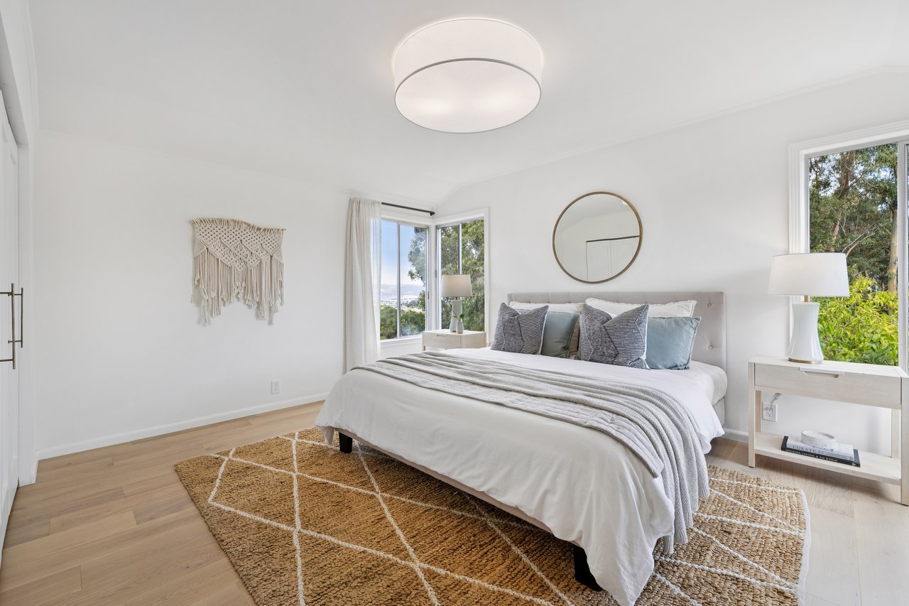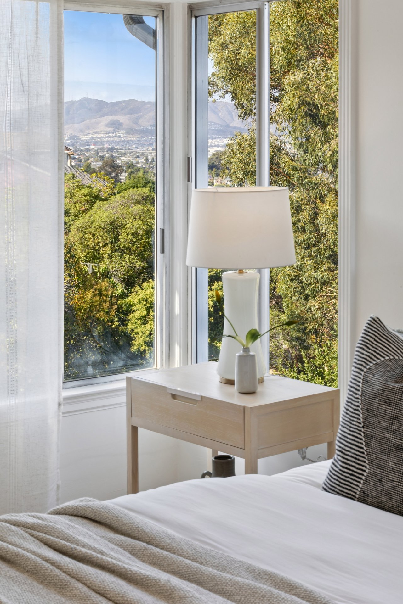 This home is nestled on a nice block and overlooks the trees of Schultz Park. It has a great layout with three bedrooms on one level and serene views of trees, hills and the bay.