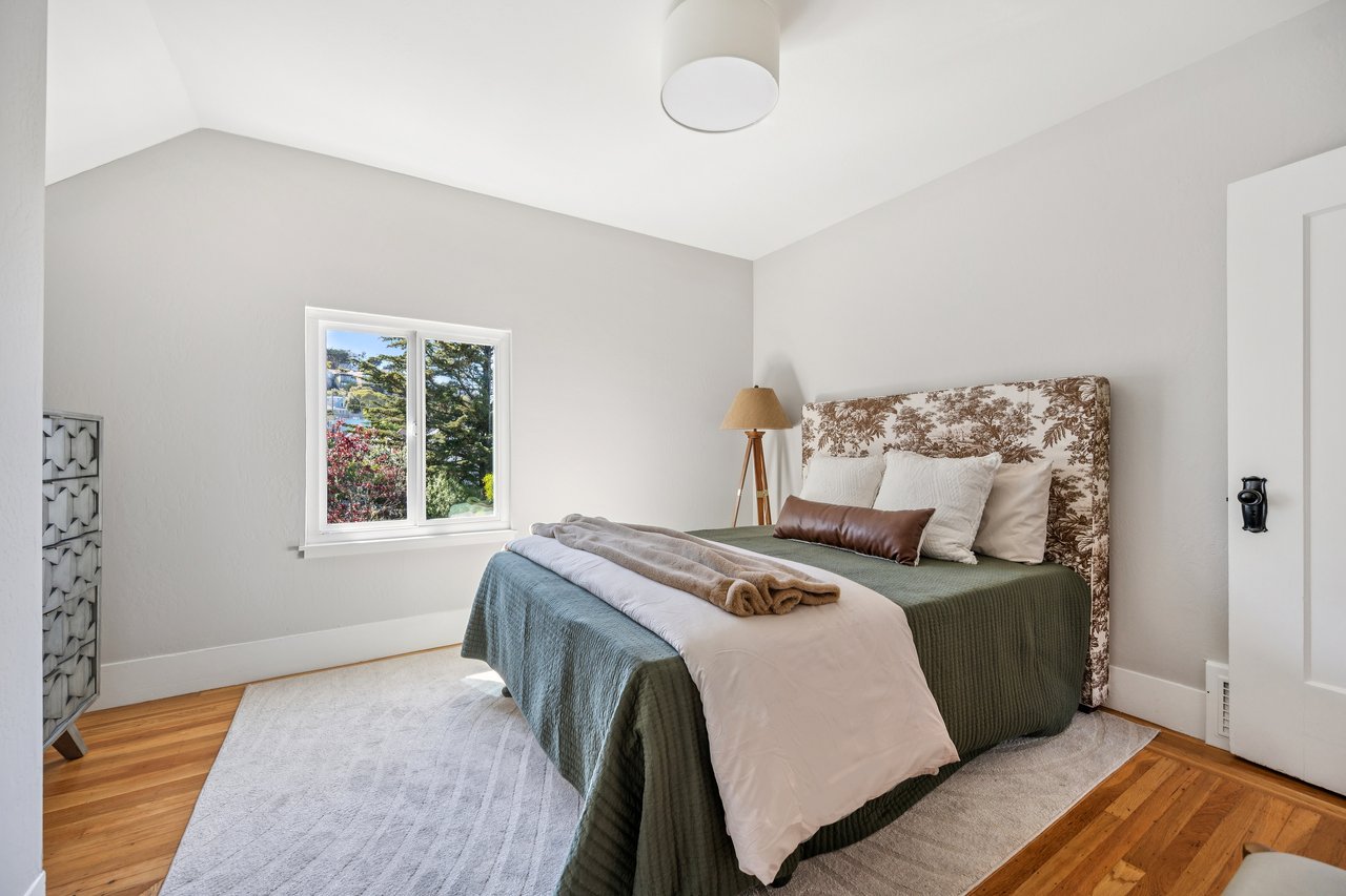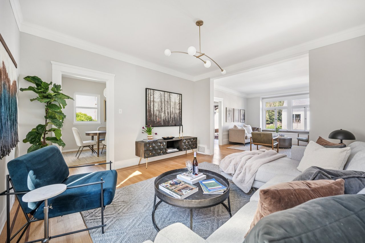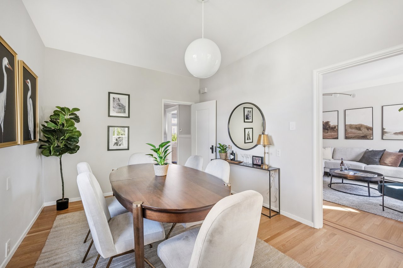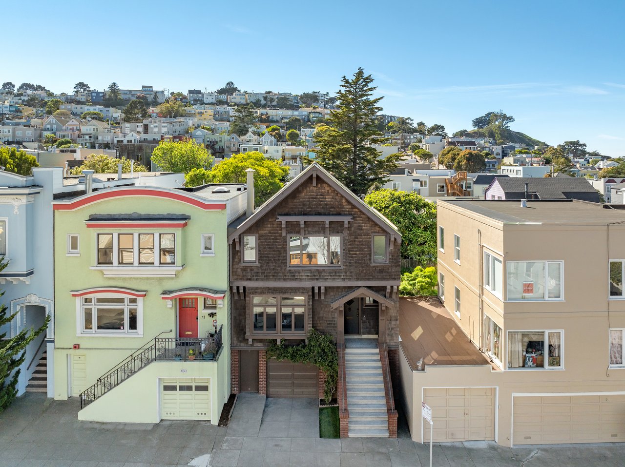 Charming 3 bedroom, 2 bath house with a big backyard and spacious garage on a desirable flatter block in the Inner Sunset. This light-filled home is detached on 3 sides and has a sought-after floor plan with 3 bedrooms on the upper level and great flow on the main level with multiple entertaining rooms. Oozing with charm and character, the main level features an inviting entryway, living room with a fireplace and built-in, a flexible room that could be a second living room or TV room, dining room, a bright kitchen that looks out to the backyard, a laundry room, a bathroom, and access to the backyard. The laundry room opens to a staircase to the expansive backyard which offers space for entertaining, lounging, and gardening. It is surrounded by beautiful lush trees and feels more private than many San Francisco yards. The upper level features 3 bedrooms and the second bathroom. The primary bedroom has 2 walk-in closets and views of Mount Sutro Forest and Sutro Tower. One of the rear bedrooms offers a partial view of the Marin Headlands and the other rear bedroom offers a partial view of Grandview Park. The large garage has interior access to the main level and access to the backyard. It offers space for cars and a lot of storage. Gorgeous hardwood floors, moldings, period details, and curb appeal enhance the home. Unlike many streets in San Francisco, there are no overhead wires in front of the house. Great location near the heart of the Inner Sunset and the many popular restaurants, cafes, shops, and N Judah in the 9th and Irving corridor. A couple blocks to J.P. Murphy Playground that has a playground, basketball court, and tennis courts. Also by the Muni Forest Hill Station and about a mile to West Portal. Close to multiple parks including Golden Gate Park and trails around Mount Sutro Forest. This is the special house you've been waiting for.