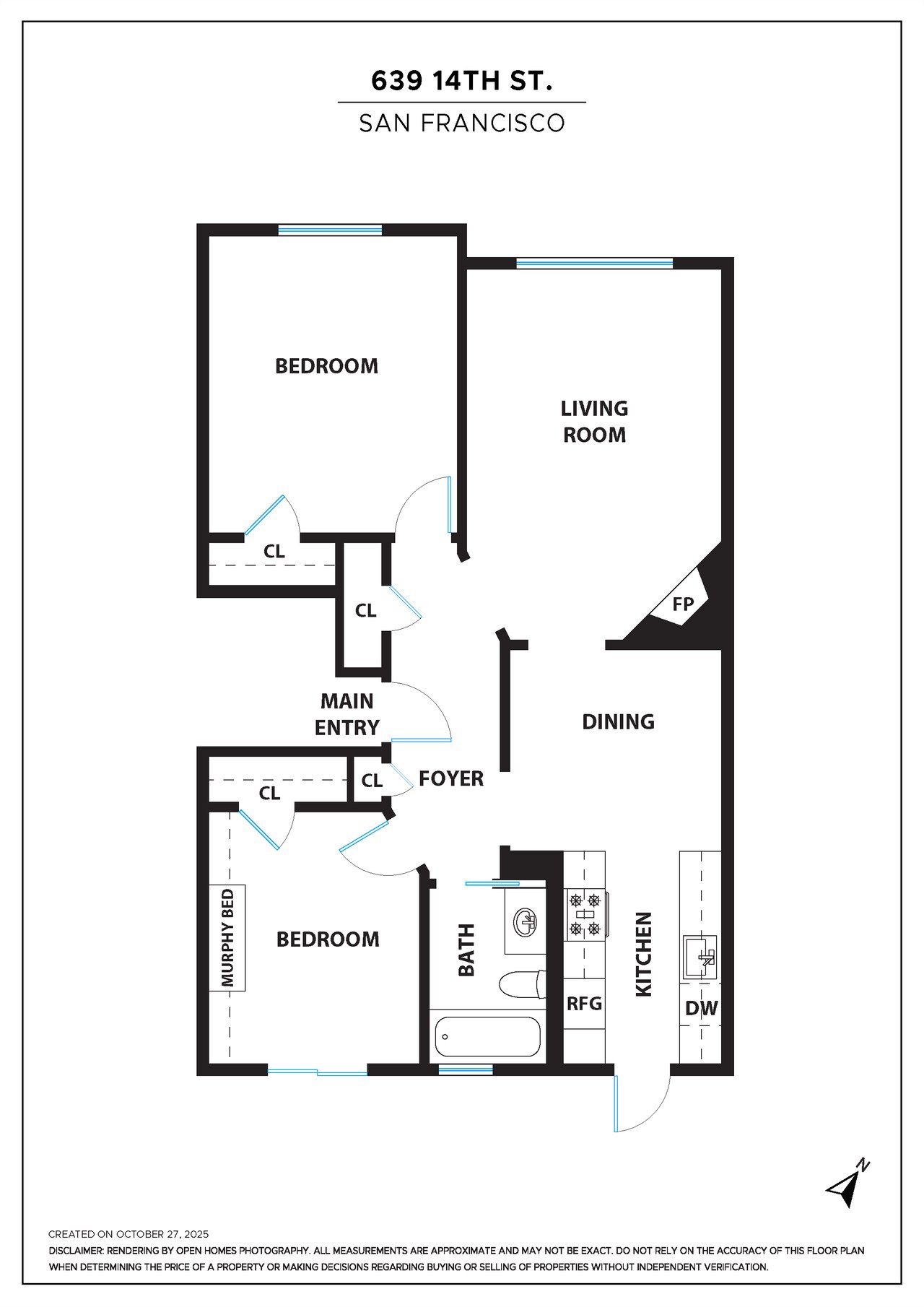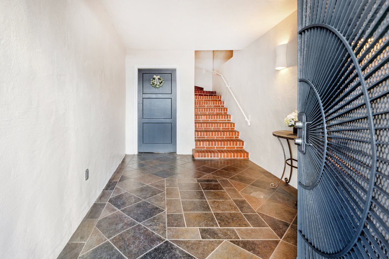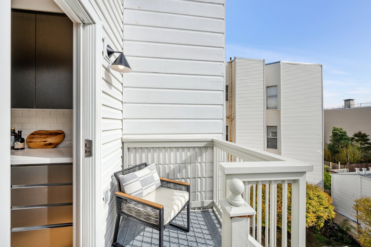 This updated full floor unit has an appealing layout with an impressive kitchen, beautiful bathroom, gorgeous wood floors, skylights, nice natural light and pleasant outlooks. The home features a spacious living room with a fireplace, dining area next to the chef's kitchen that accommodates a sizable table and 2 comfortable bedrooms. The front bedroom is large and the rear bedroom has a built-in Murphy bed and walk-out deck. The chef's kitchen has a big Miele refrigerator, Viking gas range, Viking hood, Viking microwave, pot filler and good-looking counters and cabinets. It has direct access to a staircase to the south-facing yard. The light-filled layout is wonderful for hosting friends and working from home. 2 car parking and storage in the garage. The shared yard offers space for lounging and gardening. Low HOA dues.