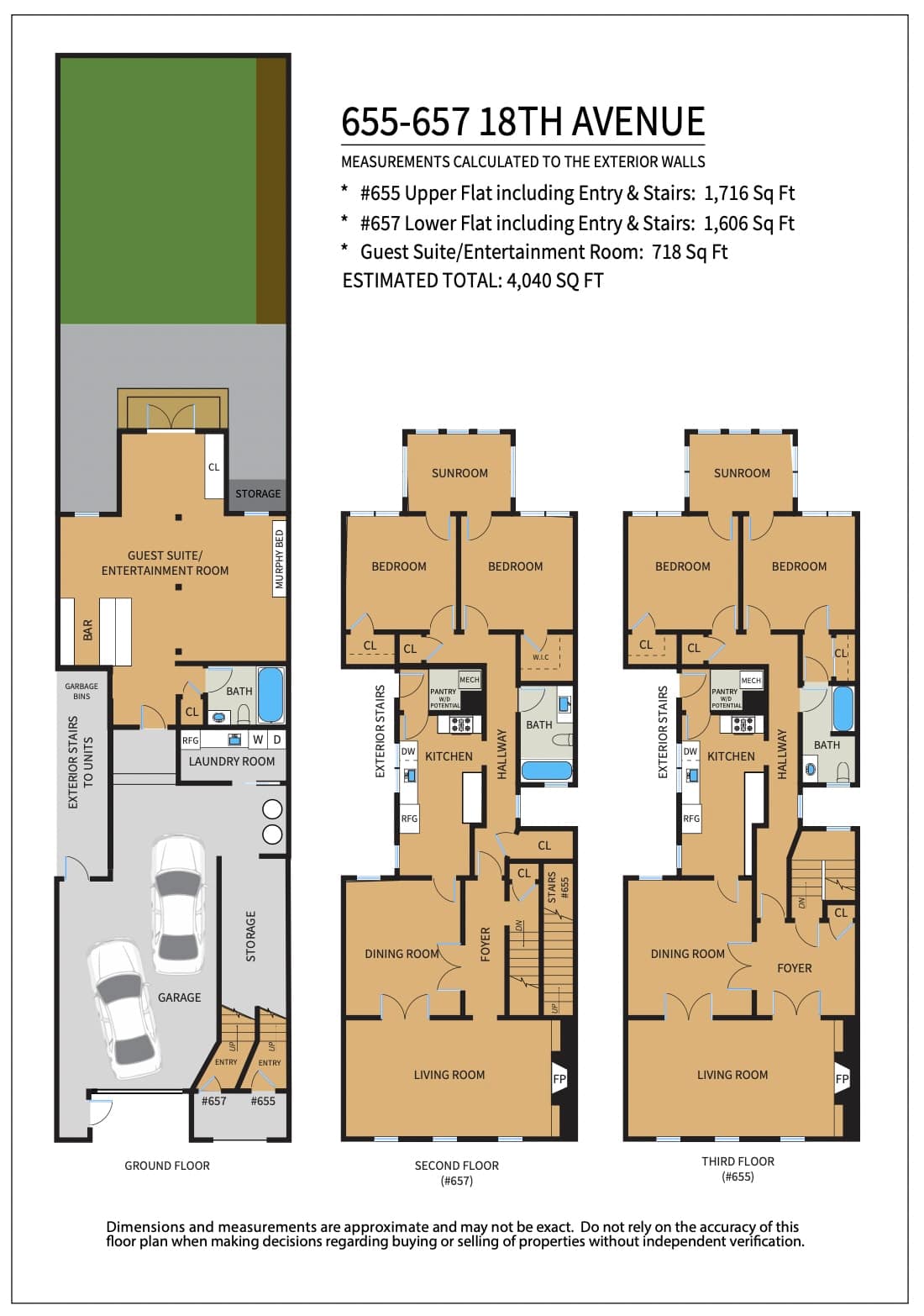 Excellent opportunity for owner-users and investors to buy a special, move-in ready building. Each flat features a coveted, spacious layout with 2 bedrooms, bright sunroom, living room with a fireplace, dining room and beautiful kitchens. Both units have nice natural light, hardwood floors, period details and views from the sunrooms. The ground floor addition offers an impressive, flexible space that has a stylish bar and bathroom - wonderful for multigenerational use, guests, office and indoor-outdoor entertaining. It opens to the sunny west-facing backyard. 2 car garage and valuable seismic upgrades complete this property.